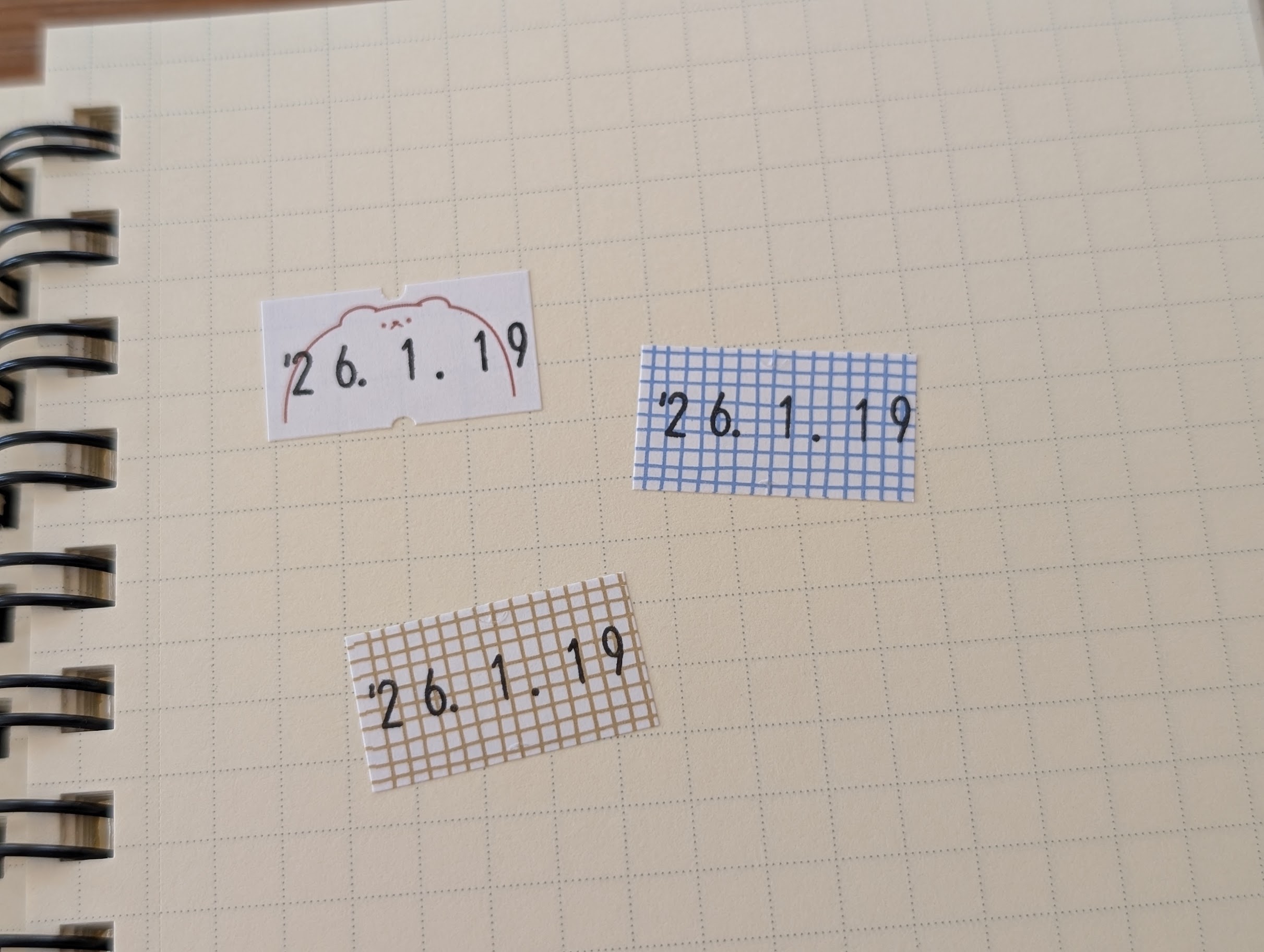 ラベラーシールにも押したかったので、サイズがどうかな?と気になっていましたが、ぴったりでした⭐️こちらのラベラーシールはhokkosさんのもの。とっても可愛いです。もちろんそのまま紙に押しても良いし、ちょっとの手間で毎日のページが素敵になるのが良いですね!